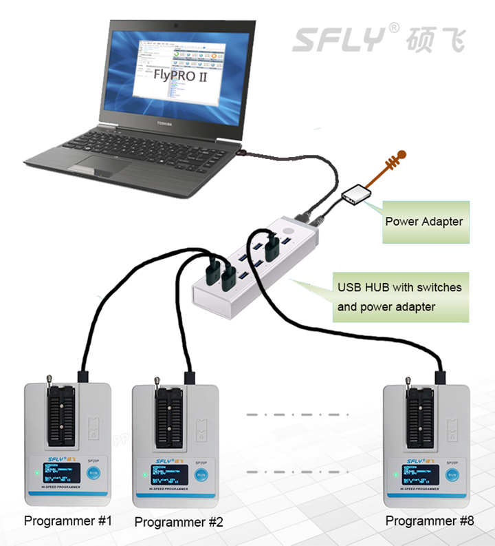 SP20 series (SP20B/SP20F/ SP20X/SP20P) programmers are the latest highspeed mass production programmers for SPI FLASH launched by Shenzhen SFLY Technology. It fully supports the high-speed programming of SPI NOR FLASH, I2C / MicroWire and other EEPROMs from domestic and foreign manufacturers.