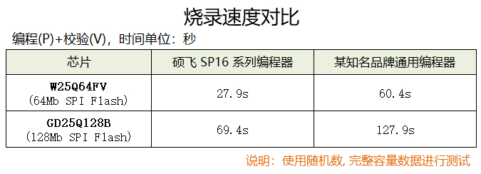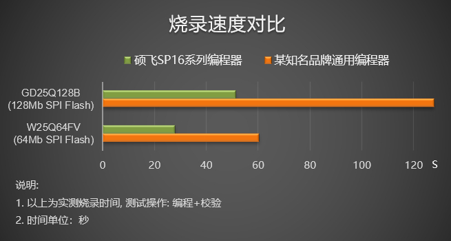 高速燒錄: SP16系列通過內置的高速處理器,以及特殊的硬件設計,專門針對串行FLASH和EEPROM,針對不同的芯片進行算法優化,實現高速可靠燒錄, 速度遠超過數千元的通用編程器.