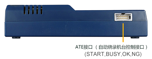 ATE控制接口: 碩飛首創(chuàng)的ATE控制接口,可提供準(zhǔn)確可靠的燒錄機臺控制信號(BUSY,OK,NG,START),廣泛支持各廠商的自動燒錄機臺/機械手,穩(wěn)定高效