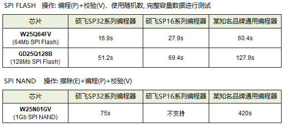 支持SPI FLASH的QUAD、DUAL、標(biāo)準(zhǔn)SPI模式 DUAL: 雙通道模式, 同時使用兩條IO進(jìn)行數(shù)據(jù)傳輸, 傳輸速率是標(biāo)準(zhǔn)SPI的2倍 QUAD: 四通道模式, 同時使用四條IO進(jìn)行數(shù)據(jù)傳輸, 傳輸速率是標(biāo)準(zhǔn)SPI的4倍 目前市面上大多數(shù)編程器(包括碩飛之前的SP8/SP16系列)都只能支持標(biāo)準(zhǔn)SPI模式