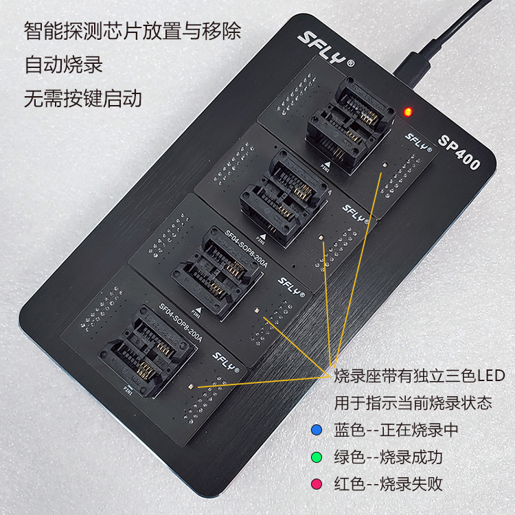 SP400是深圳碩飛科技推出的一款SPI FLASH專用量產型編程器,全面支持國內外各廠商的SPI NOR FLASH、I2C EEPROM等高速量產燒錄。使用USB口通訊,無需外接電源。相比昂貴的通用型編程器,SP400具有使用簡單,經濟高效的特點。