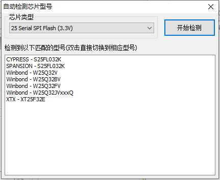 檢測完成,軟件彈出對話框列出匹配的芯片型號,如下圖: